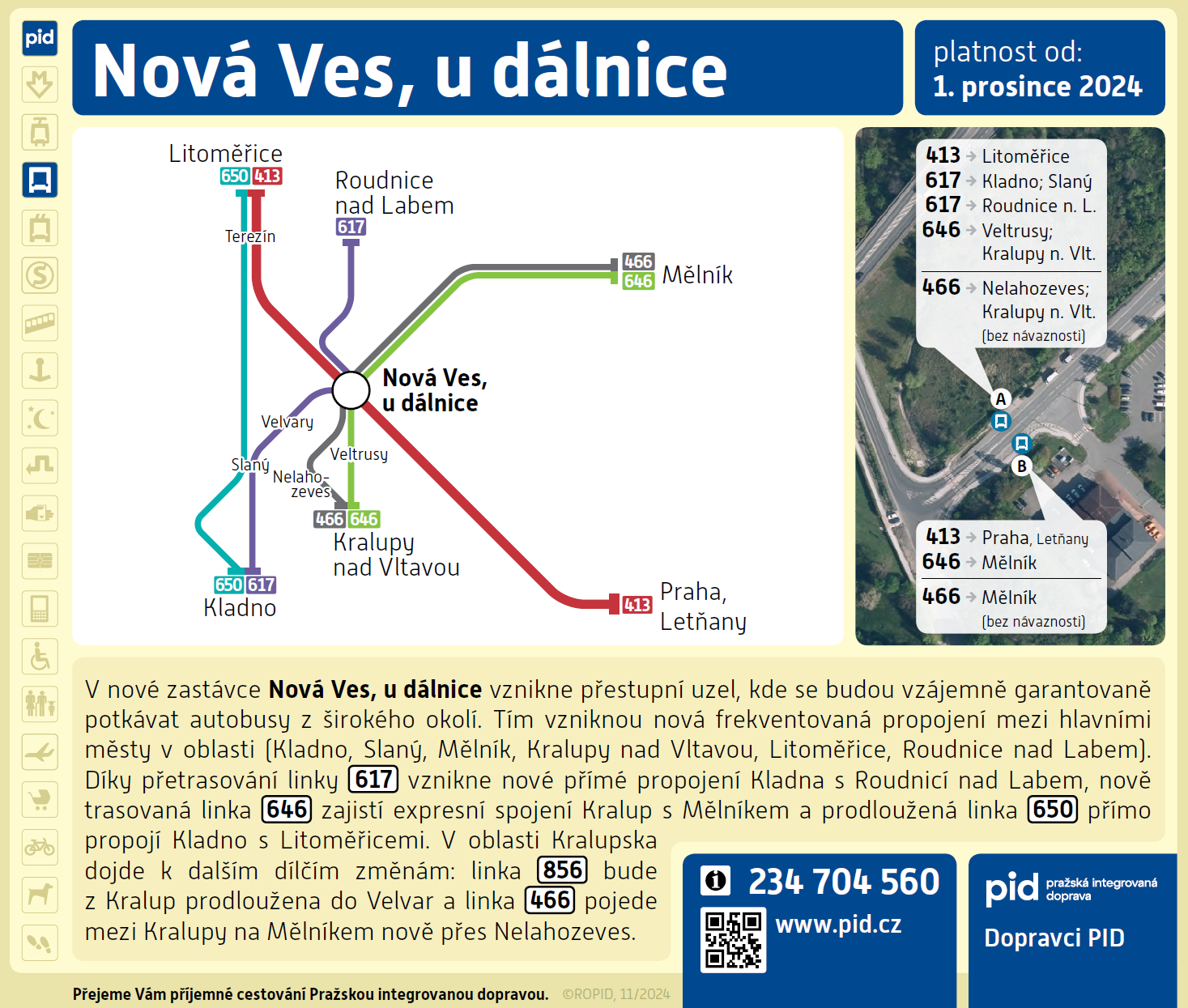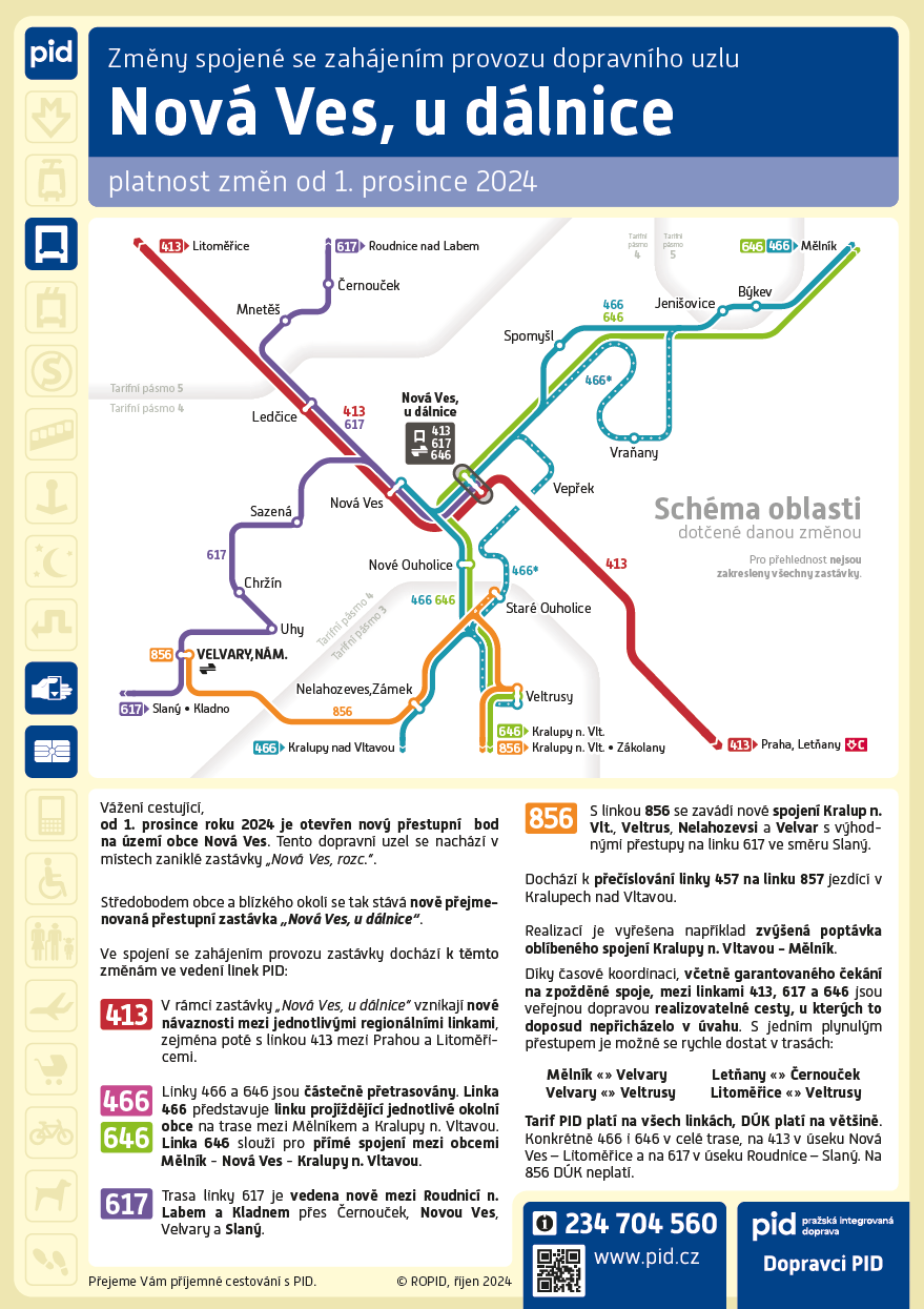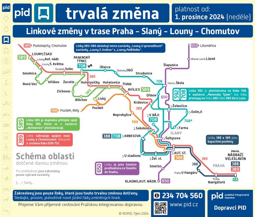 Od 1. 12. 2024 vyjedou dopravci ve 35 oblastech na základě výsledků výběrových řízení realizovaných společně Středočeským krajem a hl. m. Prahou. Nové smlouvy uzavřené na 10 let přinášejí zejména zvýšení kvality v oblasti vozového parku a přísnější standardy kvality služby. Dále budou na základě požadavků obcí, měst a cestujících a dále s ohledem na přepravní vazby a využití nabídky na jednotlivých trasách realizována dopravní opatření, která zahrnou i komplexnější úpravu linkového vedení a tím změny časových poloh či nabídky přepravních relací v rámci širšího území.